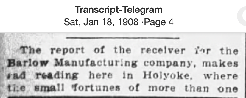 The Barlow Manufacturing Company was formed in 1894 in Boston and moved to Holyoke in 1896. It settled in the Whitcomb Building on Front Street.